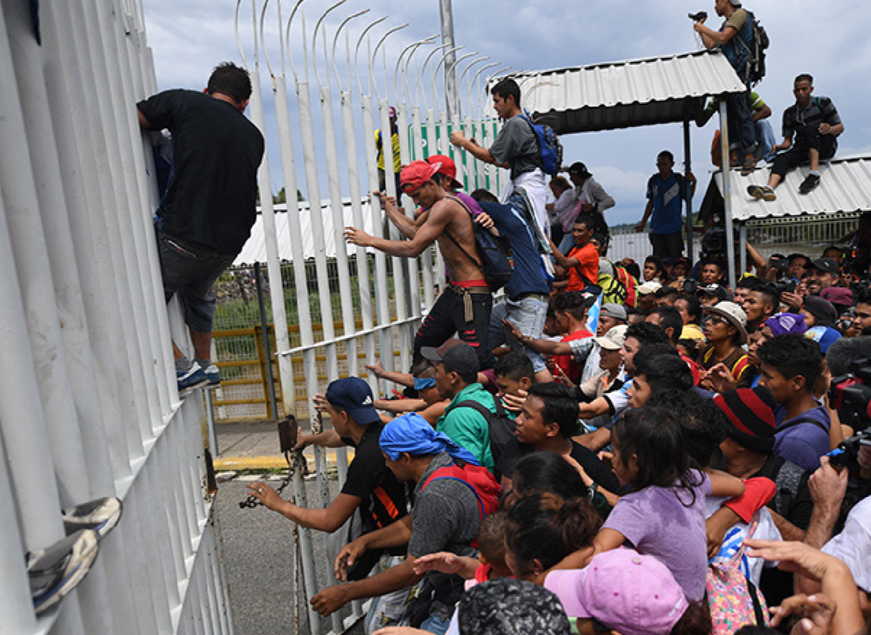 Las mas de 4,000 personas, hombres, mujeres y niños, enfrentando escases de comida y enfermedad, viviendo en el estadio deportivo Benito Juárez de Tijuana y las más de 2,000 personas más lentamente haciendo su camino hacia Tijuana de pie, y transportación organizada cada día desde la ciudad de Mexicali, aproximadamente dos horas de lejos, han sido llamados una crisis humanitaria. Suplicas han venido de diferentes lados que no hay suficientes recursos del gobierno local para adecuadamente ayudar a la caravana día tras día. No hay negando que la situación entera en Centroamérica y otras partes del mundo que están forzando a gente a migrar en grandes números es una crisis humanitaria. Sin embargo, estas palabras son completamente contrarias a las acciones del gobierno de México intentando a retrasar a la caravana de marchar y cruzar hacia los Estados Unidos y ejercer su derecho a pedir asilo en los Estados Unidos.