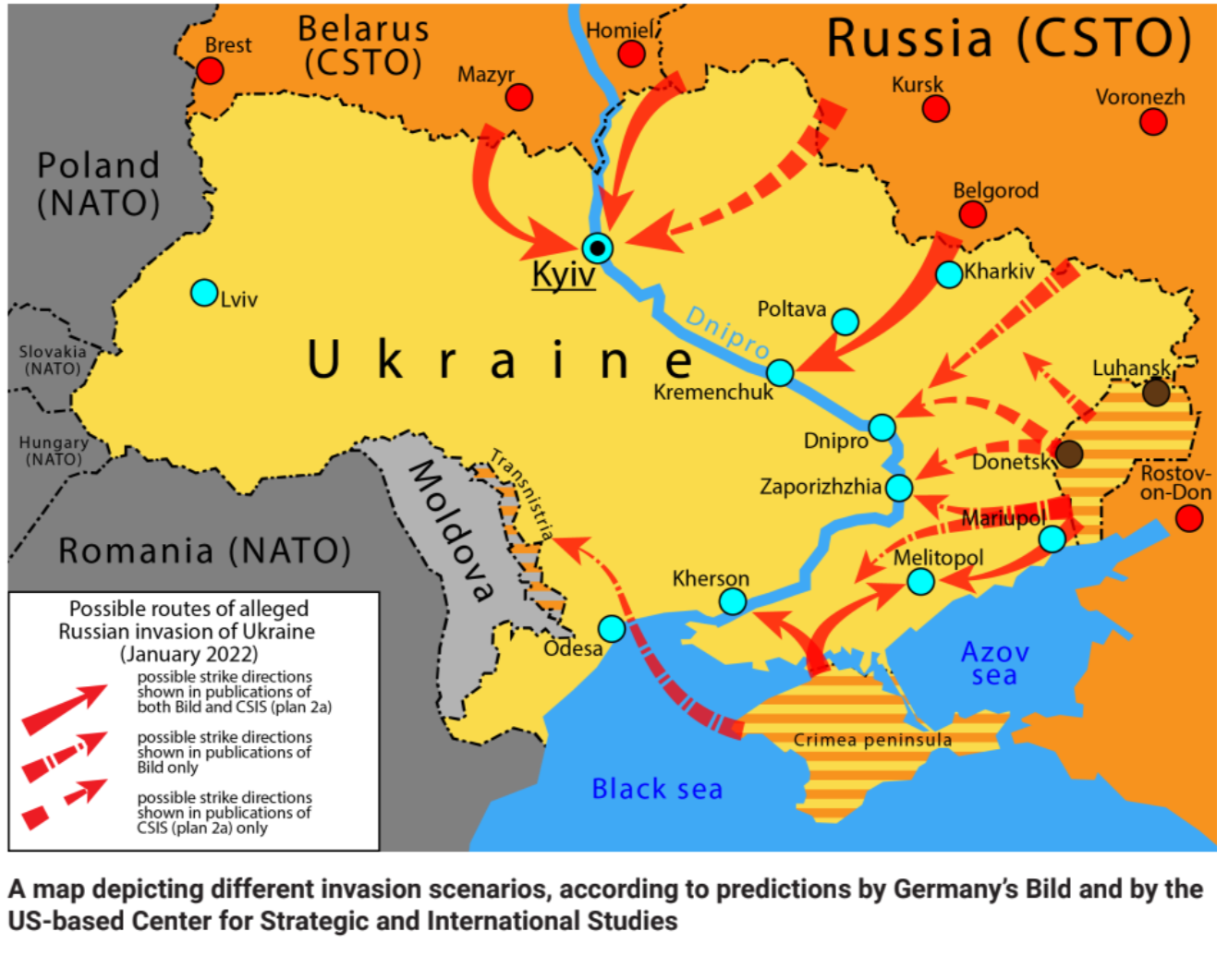 Una serie di incontri tra la Russia e le potenze occidentali durante la seconda settimana di gennaio si è conclusa in una situazione di stallo totale. Anche prima che queste discussioni finissero, Putin aveva iniziato a spostare più unità dell’esercito e armamenti dall’Estremo Oriente russo. Molte di queste unita’ sono ora in Bielorussia, dove stanno svolgendo “esercizi” congiunti con l’esercito bielorusso al confine con l’Ucraina.
